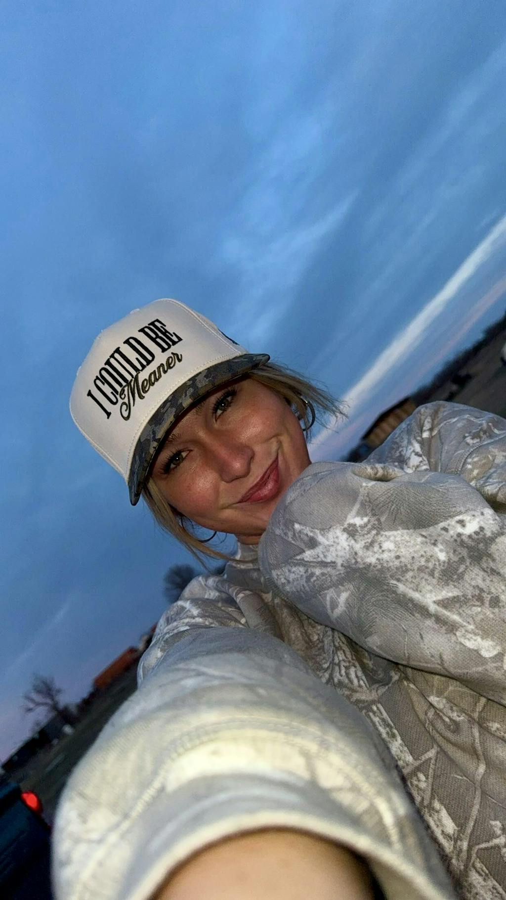 - Embroidered “I Could Be Meaner” with clean, durable stitching