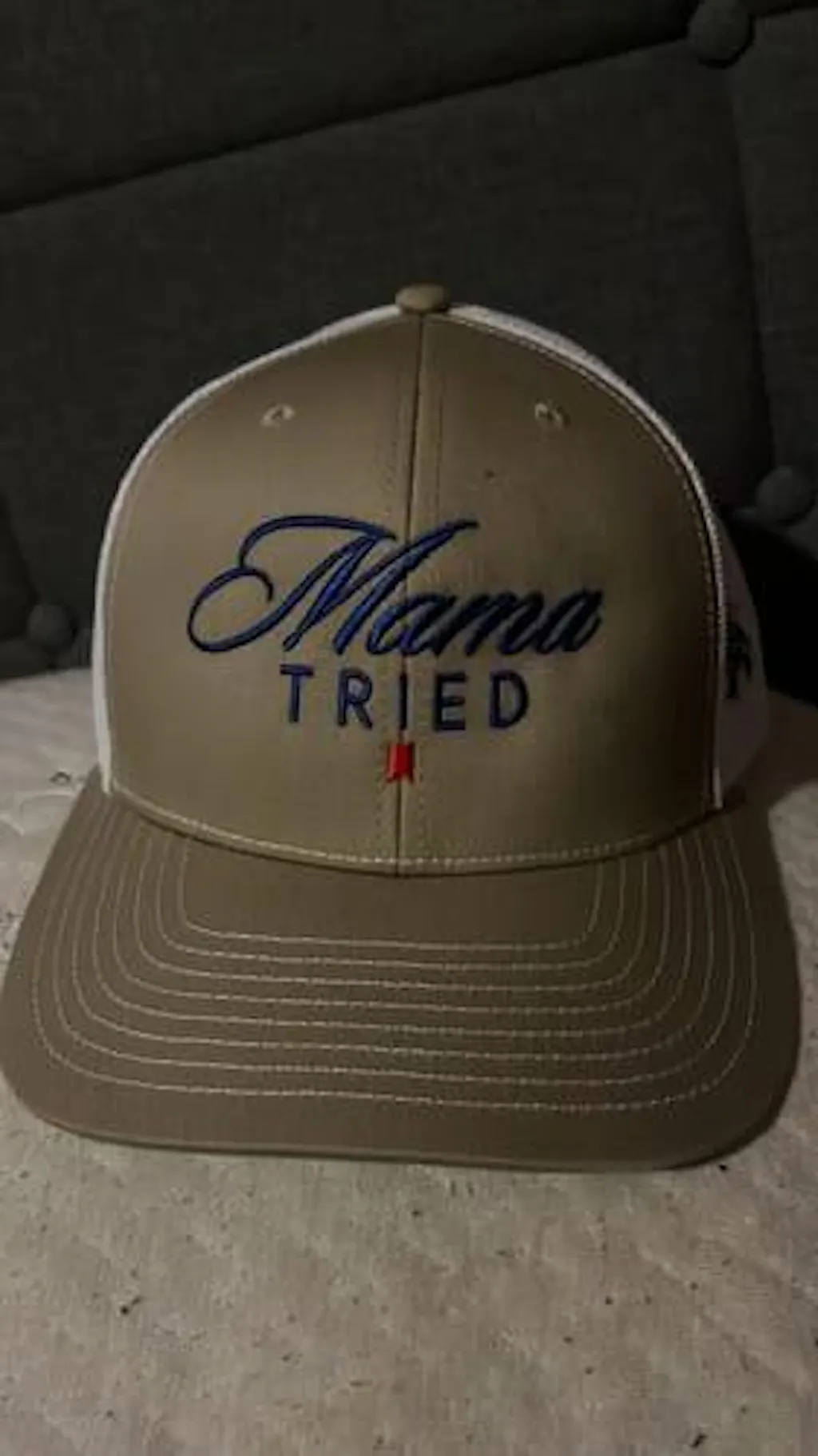 • Bold embroidered “Mama Tried Ultra” design